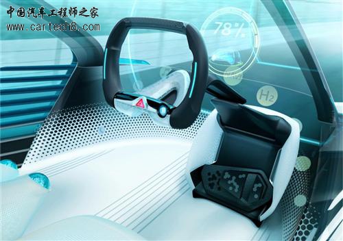 内饰设计上,丰田FCV Plus走简约路线,摒弃了传统环绕式中控台,取而代之的是矩形方向盘以及功能较为丰富的抬头显示器,造型新颖的同时也增加了驾驶舒适性。
