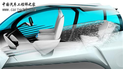作为一款燃料电池车,丰田FCV Plus概念车的燃料电池堆安装在前桥之间,氢燃料箱则置于后座下方,另外丰田还为该车的每个车轮配备了一TD立的轮毂电机,此举也有利于提升座舱空间利用率。