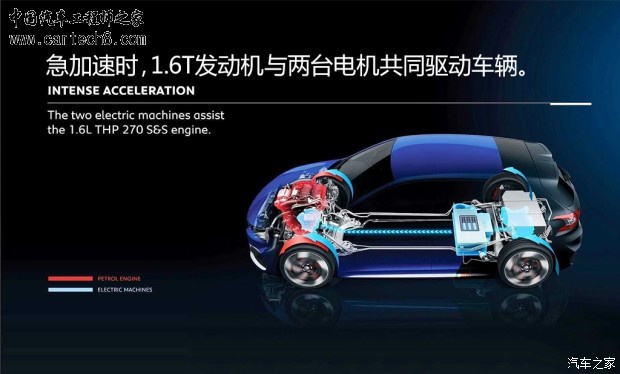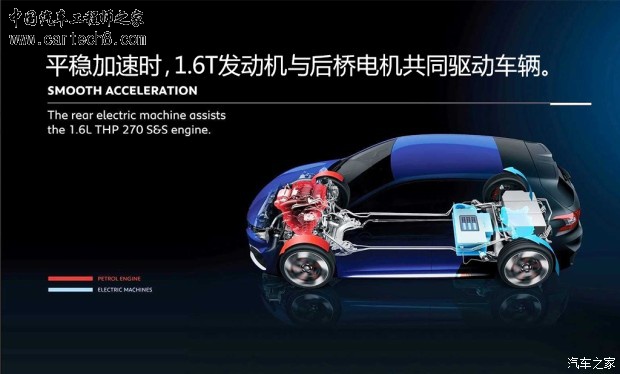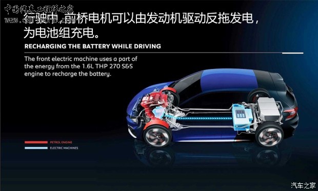 -“纯电动(ZEV)”模式主要由后桥电机驱动车辆,系统会依据驾驶员油门踏板的踩踏程度来判断对于动力的需求,需要时前桥电机会介入。此外,这台车的混动系统还有5种工作模式,在行驶中发动机与电动机相互配合,共同完成车辆的加速以及发电、充电等工作。