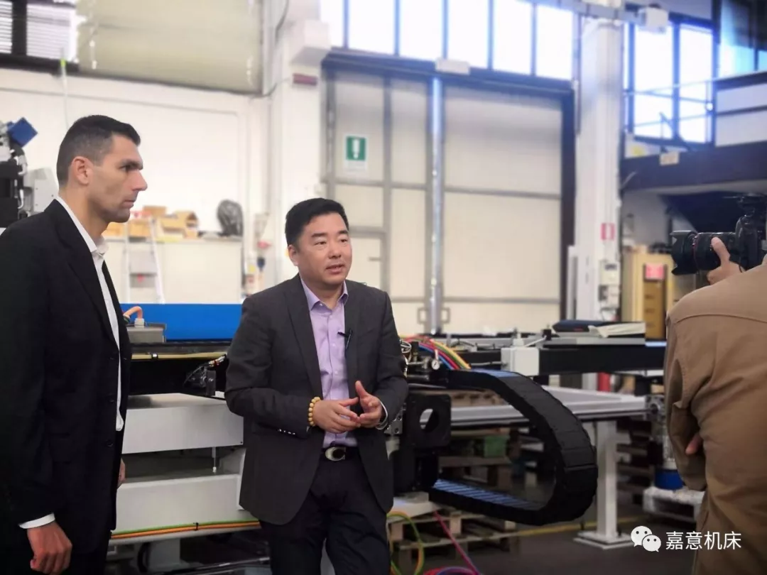 有关山东省境内企业收购意大利公司,技术引进和创新,在山东省属于少数案例, 像这样的跨国收购意大利公司也证明了山东嘉意机械有限公司和嘉意机床(上海)有限公司管理层对创新型制造业的态度和勇气。跨国收购意大利公司有助于引领国内技术向国际看齐,国内工程师与意大利工程师技术对接,充分利用两国优势,综合打造先进产品,利用全球营销网络,充分发挥国内产能优势。作为国内企业收购意大利的老牌工业企业, 也验证了先进的创新性企业必须敢于创新、敢于拼搏、敢于面对风险与困难、敢于比拼其它国际高端品牌的新模式新态势,也是我们企业的新形象与新目标。下图为嘉意机床(上海)有限公司的总经理夏兴先生在采访现场的精彩片段.