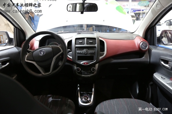 内饰方面的变化依然不大,奔奔EV采用了黑红双色内饰设计,座椅为黑色织物面料。