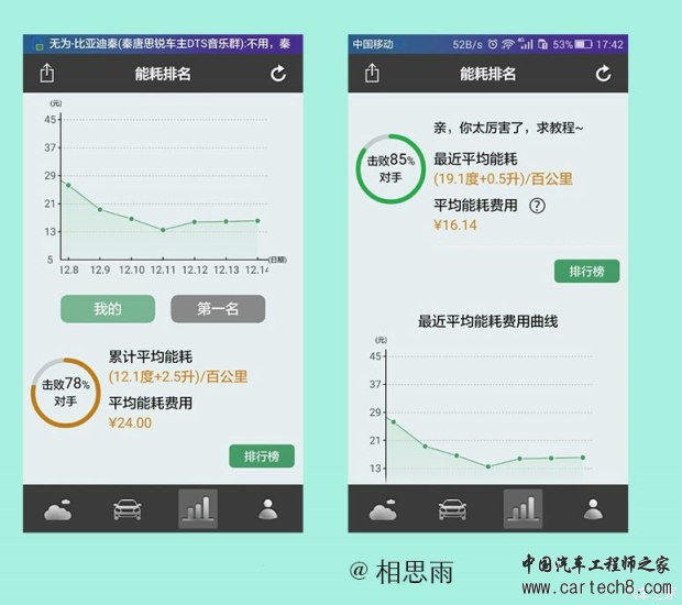 由于加入了纯电里程,不如原来纯燃油那么容易统计,至今,秦的百公里能耗依然是大家讨论的热点话题。所以我们索性把群内秦车主的实际行车能耗统计在一起,做一些简单的分析,方便大家参考,尤其是秦的准车主。