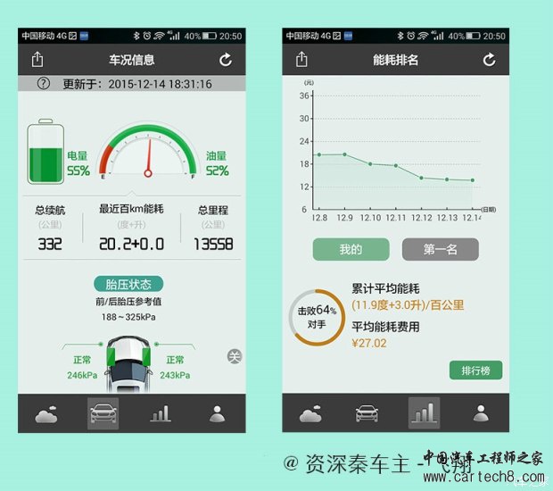 部分秦车主的能耗统计电耗和油耗数值来自于车主提供,每公里成本统一计算方式为(电耗X0.55/度+油耗X5.5/L)/100