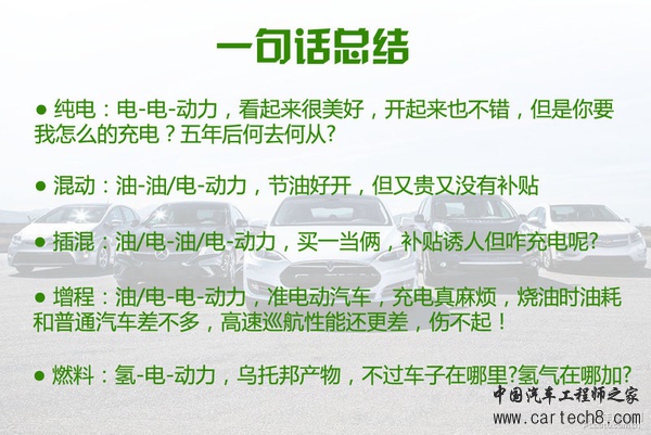 总结:以上说到的仅是新能源汽车的基本分类,能够使大家在购车过程中,区分清楚不同车的不同属性。当然,新能源汽车的知识可远不止这些,不同类型的电池、电机、不同结构的驱动方式,里面学问可深了,而我们也会接下来的文章里面为大家进行详细解释,并且在日后的新能源汽车评测里面解析不同品牌的技术特点、使用方法、续航里程等。