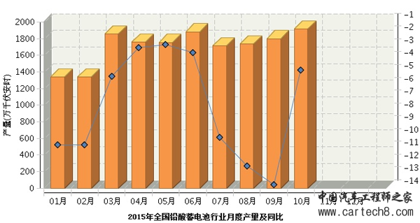 国家统计局最新公布的数据显示,2015年9月中国铅酸蓄电池产量为17985767.99千伏安时,同比下降13.72%。2015年1-9月止累计中国铅酸蓄电池产量150646332.22千伏安时,同比下降10.47%。最新数据如下表所示: