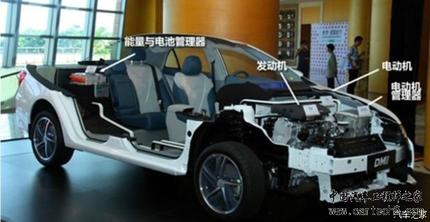 提到混动,我们不能不提比亚迪。在自主品牌中,比亚迪在混动领域的地位无疑就是带头大哥,甚至比众多欧美品牌都要早。近两年推出以朝代命名的几款混动车型备受关注,当秦以其惊爆眼球的性能参数杀入自主品牌市场时,让行业内很多人都情不自禁的发出了惊讶声。在之后比亚迪又提出了“542”的新能源车战略规划,5代表所有车型加速在5秒内、4代表全面四驱、2代表百公里油耗在2L内。唐和宋就是542战略规划下的产品。通过比亚迪的542战略,我们看到比亚迪的混动系统更多的是向性能系进攻的策略。这里我重点来讲解一下秦和唐的混动结构和控制策略。秦是插电式并联,唐是插电式混连,实际是在秦插电式并联的基础上加了一个后驱的电机而演变的混连。