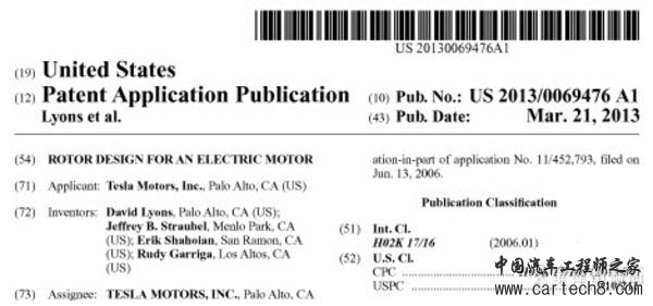 特斯拉汽车的感应电动机是他们的专利产品,感兴趣的朋友可以点击进去看看它的专利文件: