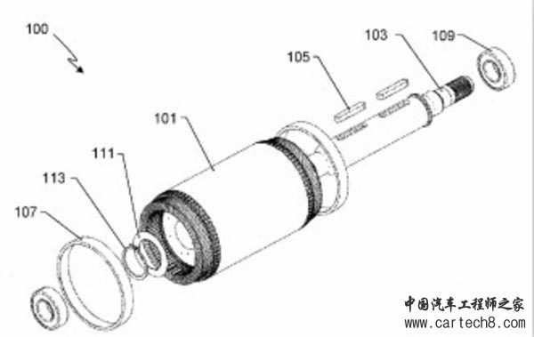 特斯拉汽车主要对电动机的转子进行了一系列的改进,以求能使它来够实现特斯拉汽车的要求,下图就是那个专利的转子: