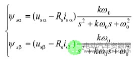 为定子磁链的αβ轴分量;μsα,μsβ为定子电压的αβ轴分量;isα,isβ为定子电流的αβ轴分量,Rs为定子电阻。