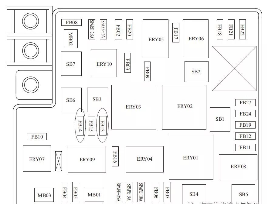 2. 检查供电熔丝。检查前机舱电器盒内的动力电池低压供电熔丝是否熔断 ▼