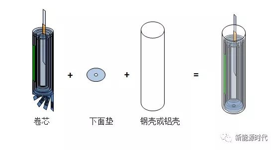 卷芯入壳前需要进行Hi-Pot测试电压200~500V(测试是否存在高压短路),吸尘处理(入壳前进一步控制粉尘)。这里需要强调锂电的三大控制点水分、毛刺、粉尘。前面工序完成后,将下面垫垫入卷芯底部后弯折负极耳,使极耳面正对卷芯卷针孔,最后垂直插入钢壳或铝壳(以18650型号为例,外直径≈18mm+高度≈71.5mm)。当然卷芯的横截面积 < 钢壳内截面积,大约入壳率在97%~98.5%,因为要考虑到极片反弹值和后期注液时下液程度。同入面垫工序,将上面垫也装配完成。此车间环境温度≤23℃,露点≤-40℃。