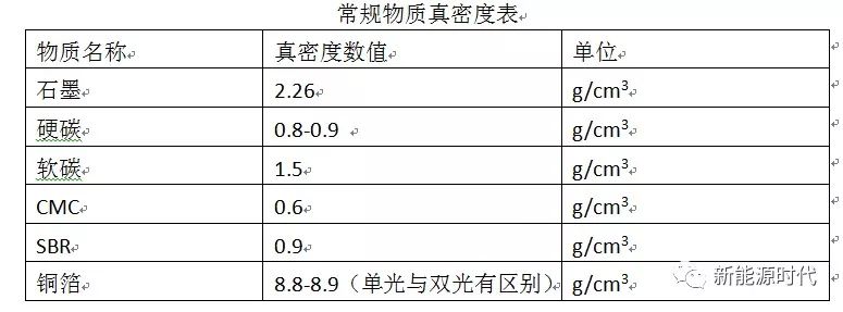 1、负极制片与正极同样操作,但工艺设计不同,车间环境温度:≤23℃,湿度:≤25%。常见负极物质的真密度