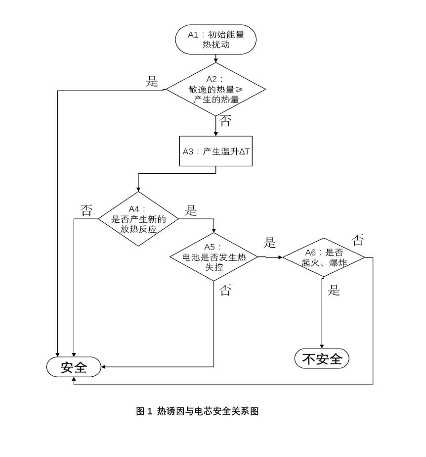 A1阶段:电芯在使用过程中首先会产生初始能量热扰动,引起热扰动的能量来源包括电芯内部正常的锂离子充放电化学反应、内部非正常化学反应(如不符合额定电压、电流、温度或有热传导的滥用造成的内部剧烈反应,外部和内部机械结构损伤最终造成的内部剧烈反应等),从而导致电芯产生热量。与此同时,电芯会向外进行热量散逸,同时部分化学反应会伴随吸热;