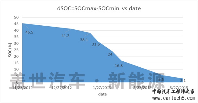 而且由于SOC、SOP的问题,车在路上经常抛锚。公司一致认为是电池质量问题而且一致同意更换电池供应商。但是我仅仅只是更改了算法,就把均衡的问题解决了。而且是在公司明确规定不许充电的情况下做的。因为已经有一辆车由于电池问题出了事故。电池组中电芯SOC的差别由45%降到了3%。现在车已经行驶了十几万公里了。抛锚的问题再也没有发生过。