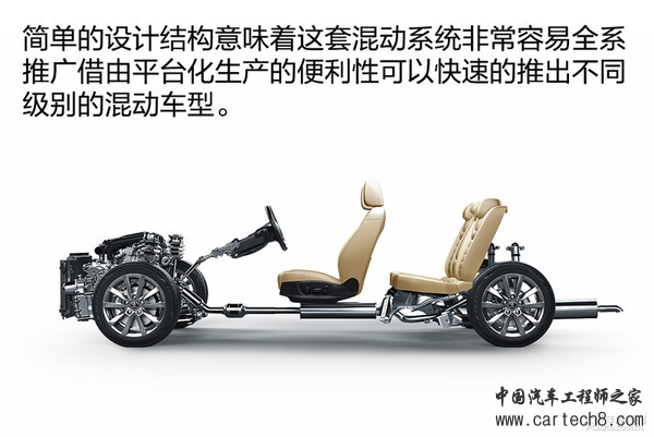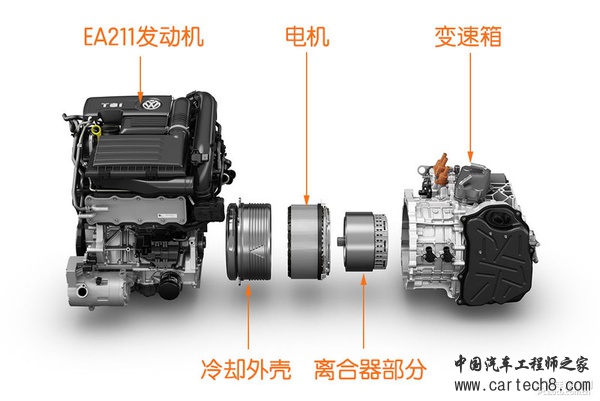 没错,非常简单的结构。无外乎在传统的动力总成之间多加了一个电机和离合器(该离合器用于控制电机和发动机之间的连断),其他都没变。