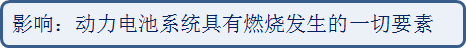②局部连接阻抗过大,导致温度上升,达到着火点温度,引燃动力电池包内部的可燃物质