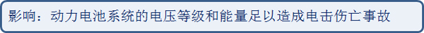 动力电池系统为非安全电压的直流电系统,所造成的电击危害为人体直流触电。