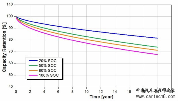 此外,对电池或车辆正常存放时的衰减情况专家也做了研究。结果表明:车辆即使不运行静态存放时,电池的电量也会逐渐衰减。