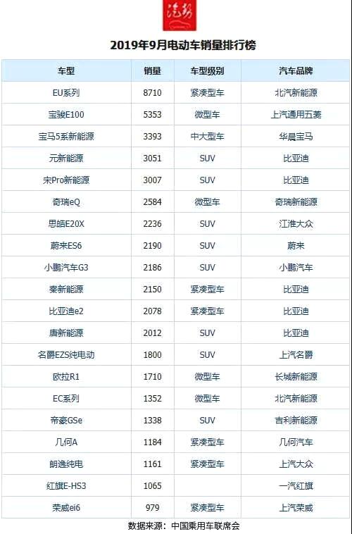 2019年9月最新的销售数据显示,在9月的纯电动车销售排名中,前20名中只有宝马5系新能源、江淮大众思皓E20X和朗逸纯电上榜,不过,排名第三的宝马5系新能源是插电式混合动力车,不算纯电动。而之前表现不错的轩逸纯电9月销量仅为50辆。