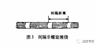胶带在缠绕时不是螺旋式缠绕,缠绕后裸线外露多,缠绕不均匀,一般情况下,胶带缠绕后的间隔距离为80~200mm,如图3所示,此缠绕方式一般使用在线束外的保护套管波纹管上。