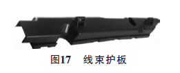 线束支架护板通用性差, 不同车型所设计的支架护板都不相同,材质有PP、PA6、PA66、POM、ABS 等多种, 一般开发费用较高。
