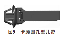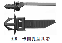 卡圆孔型扎带多用在钣金比较平整且布线空间较大线束走线平缓的地方, 如驾驶室内, 圆孔直径一般在5~8 mm