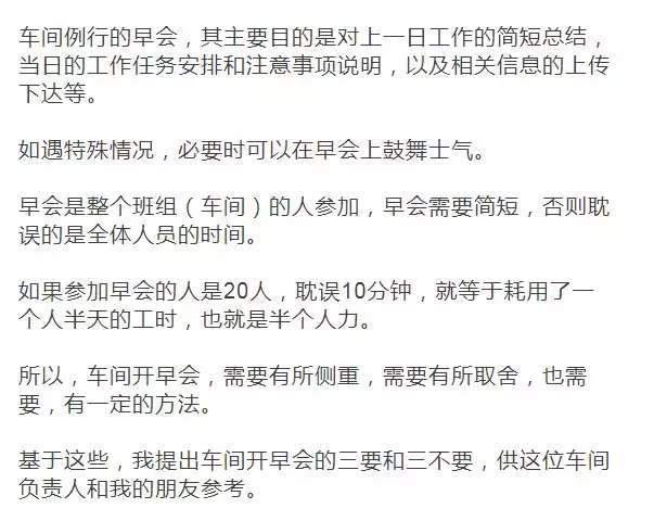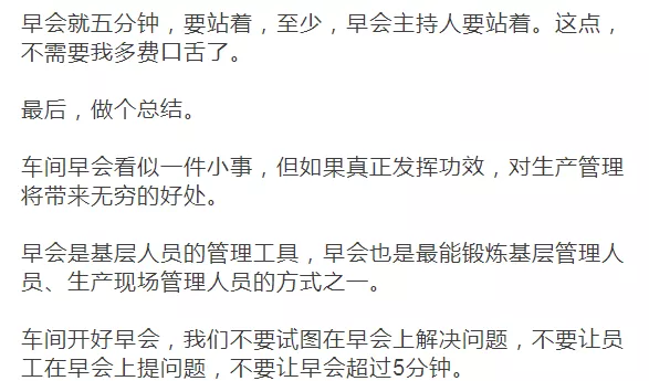 (注:本文所说的早会只针对制造型企业生产车间的早会。)