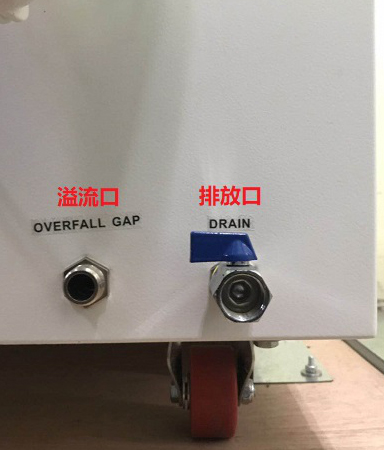 ⑴打开冷水机底部的排放阀,将冷水机内的冷却水全部排放干净并保持阀门开启。