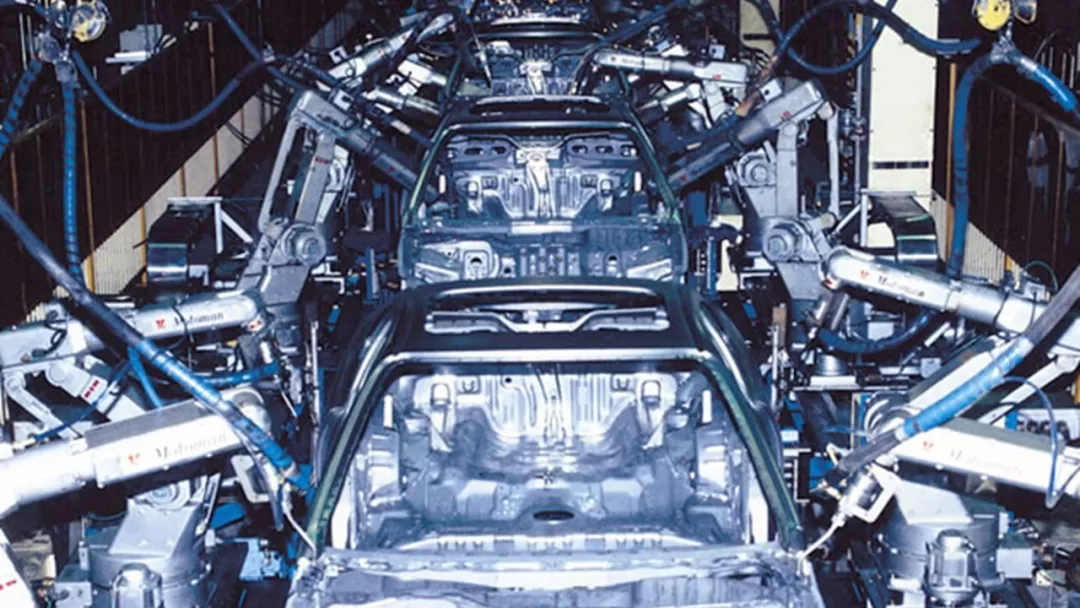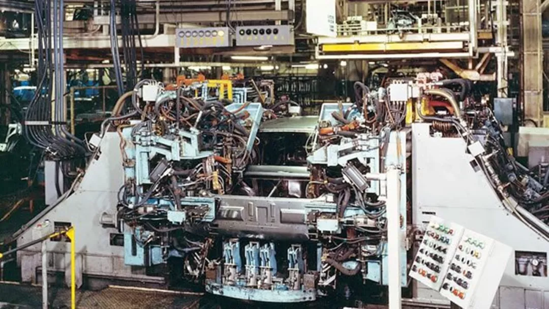 EG于1979年2月开始设计/建造主要的GW,意图是它将成为他们计划引入大规模生产线的新焊接工艺的一部分。该系统的机制如下:使用托架夹具来定位焊接在分拼线上的地板总成并将其馈送到主GW中。然后,将内侧围和外侧围从GW的侧面引入并放置在焊接夹具中。然后在夹具向内转动时焊接这些部件,然后将它们转移到托架夹具上。随后,车顶,仪表板和衣帽板从GW上方组装,同时在大约150点进行点焊。该方案仅在一个过程中促进了白体的完成。车型转换完全自动化(大约五分钟),使其成为生产多种型号的理想选择。该系统被称为SMGW,SM代表子组件和主组件的首字母,因为它集成了子组件和侧围的主要工位。