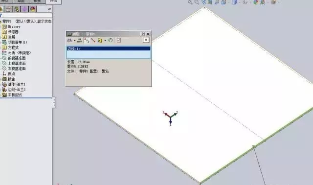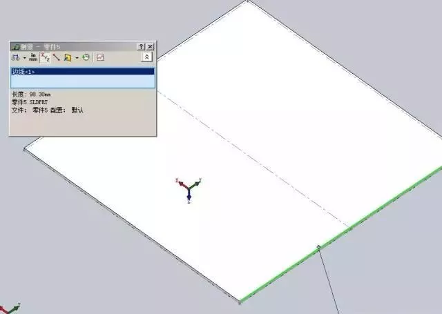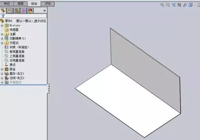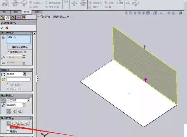 打开solidworks软件画钣金件,长度为100,宽度为50的钣金件。做一个边线法兰高度为50的折弯。如下图: