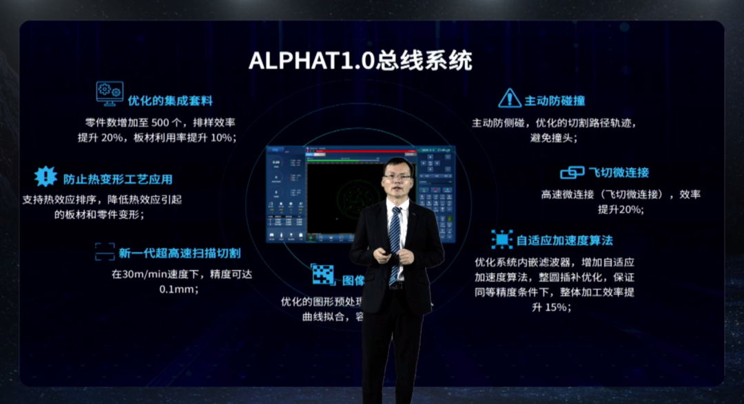 本次发布的新品GT系列设备,配置自主研发稳定的ALPHAT1.0总线系统,针对中高功率2-6KW应用配置在“500+高效智能切割方案”、“超高速扫描切割”、“主动防碰撞再升级”、“高效控烟”等核心功能指标上为用户带来更震撼的升级体验。