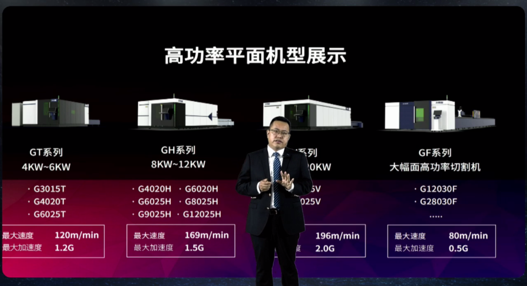 全新GT中高功率激光切割机的面世,可以说也是宏山激光专注单元技术提升,不懈追求行业高功率应用体验升级树下的再一个里程碑。会上,宏山激光总工程师成军为用户带来了宏山激光高功率板切家族全线设备的精彩分享。从本次亮相的GT系列,到突破行业板管一体设备重管切割瓶颈的GHE系列、超大幅面板切能手GF系列,以及4代传承经典的高功率前锋GH系列。每一款设备,都有其独特的风采以及针对的行业应用场景,一展宏山激光高功率技术实力。
