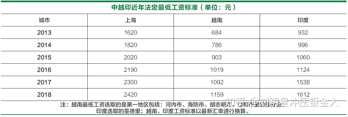越南人力成本具有比较优势。据调 研了解,越南平均月工资2900~3000元,每年有6%~7% 的涨幅,制造业工人月工资2400~2500元,低于2017 年国家统计局公布的中国制造业企业月人均5356元的工资水平,与菲律宾、马来西亚、泰国等东南亚国家相比也处于较低水平。这种要素禀赋将为 越南承接产业转移和制造业发展提供正向支撑,特别是劳动密集型的制造业企业。