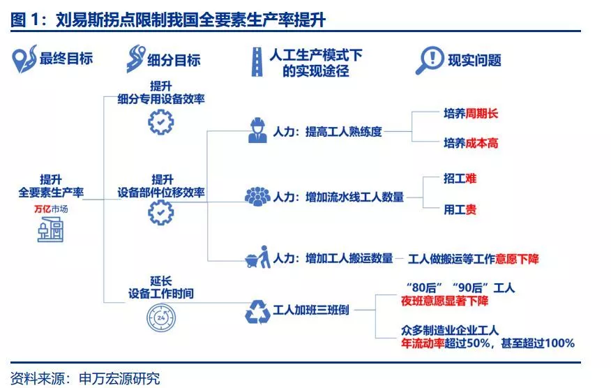 当前我国经济面临刘易斯拐点,人口出生率长期低迷,人口老龄化加速,人口红利消失,与此同时机器价格快速下降,人工智能等新技术积累初见成效,并且得益于高等教育,人才红利显现,人口红利+人工智能是未来经济二次腾飞的发动机,智能制造肩负重任。