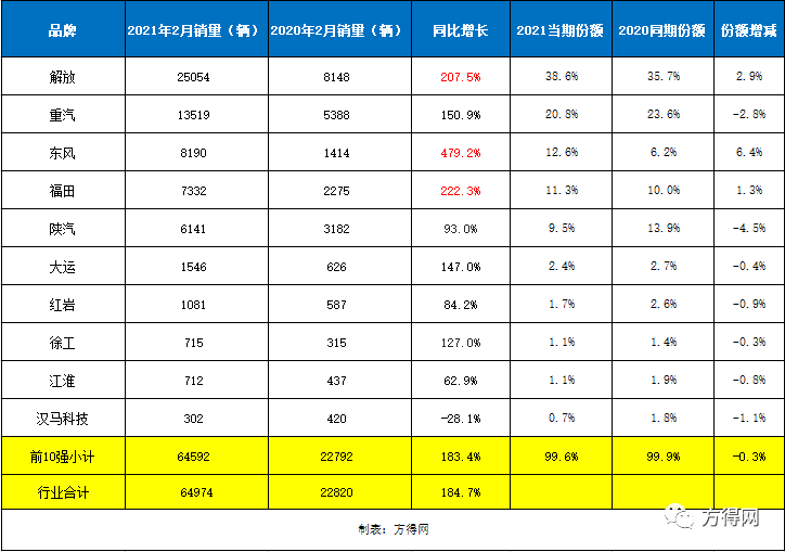 2月:解放、福田翻双倍涨 东风暴涨4倍