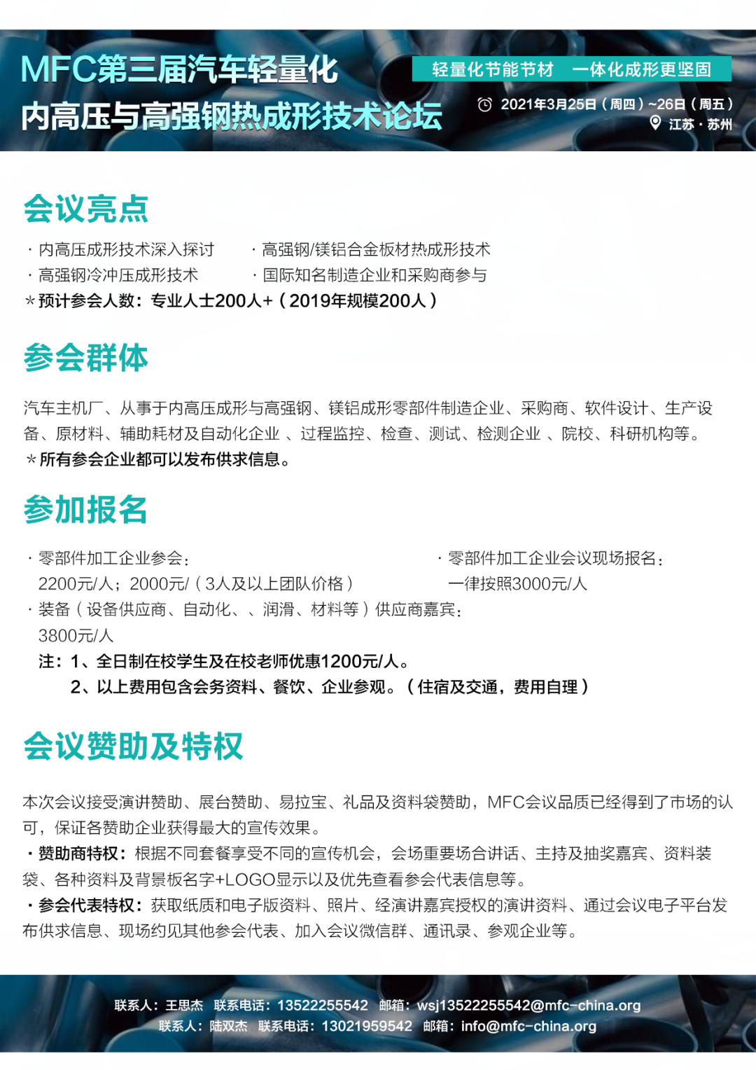 屹丰汽车 将出席“MFC第三届汽车轻量化内高压与高强钢热成形技术论坛”!