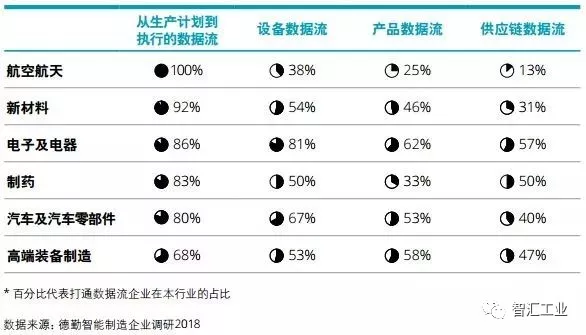 德勤调研结果显示,目前企业致力于打通从ERP到MES乃至现场设备的数据流,但这也仅是从生产到执行的打通,未来 还需将产品数据、供应链数据串联。我们将生产数据流分为两个环节:一、打通生产计划与执行系统的数据流;二、执行与监控和现场设备的数据流。