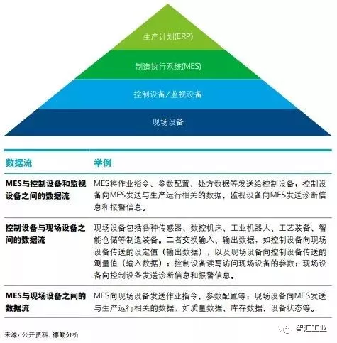打通生产流程数据除了从生产计划到 执行的数据流(如ERP到MES), 还包括MES与控制设备和监视设备之间的数据流,现场设备与控制设备之间的数据流,以及MES与现场设备之间的数据流等。