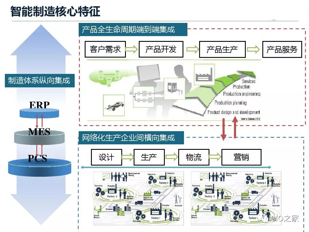 通过建立描述这三个维度的信息模型,利用适当的软件,能够完整表达围绕产品设计、技术支持、生产制造已经原材料供应、销售和市场相关的所有环节的活动。实时数据的支持,实时下达指令制导这些活动,全面的优化,在三个维度之间交互,我们叫数字化工厂或智慧工厂。