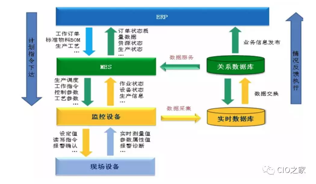 执行层:实现面向工厂/车间的生产管理,如维护记录、详细排产、可靠性保障等。制造执行系统(MES)在该层运行。