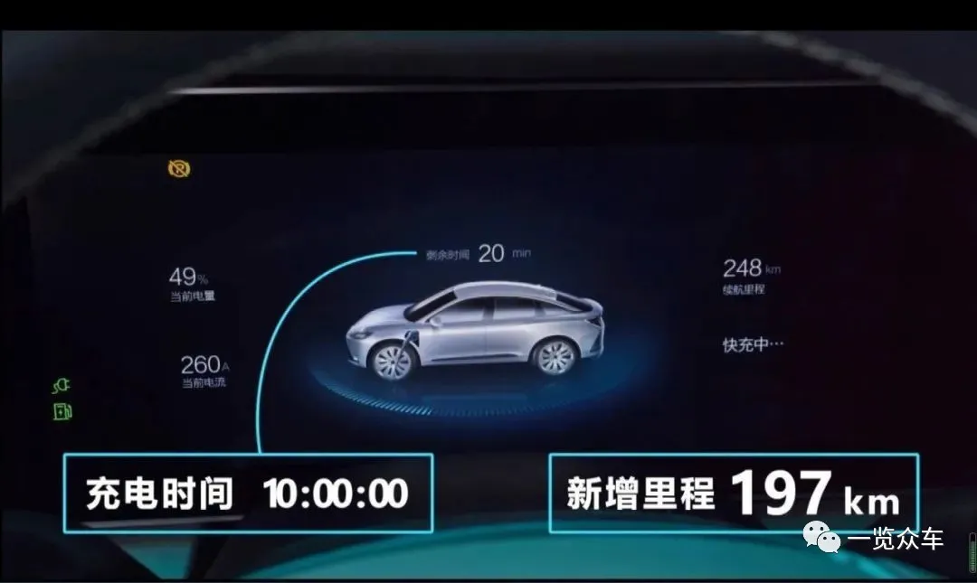 电池方面,新车搭载宁德时代的容量为93.6kWh的三元锂离子电池包,在直流快充模式下,充电10分钟可实现197km续航,15分钟即可将电池从30%充至80%。