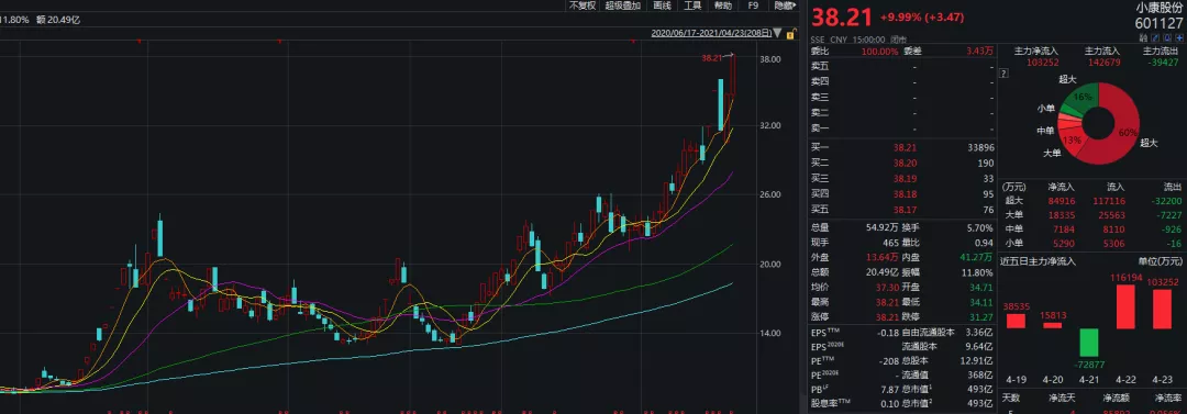 受赛力斯与华为联合打造的赛力斯华为智选SF5上市消息影响,小康股份股价异动。Wind数据显示,4月19日至24日,小康股份5个交易日有4个交易日涨停,1个跌停。