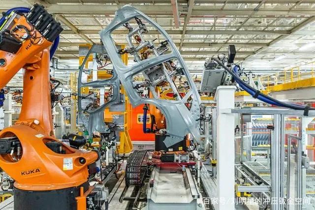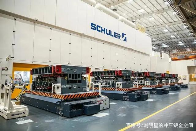 上海安亭大众工厂,冲压车间建筑面积约31680㎡,主要生产单个车型的19个大型内外覆盖件。车间拥有两条世界先进的舒勒伺服高速压机线,并首次采用二层冲压件仓库,使用AGV与升降机对接实现零件在两层仓库之间的运输。