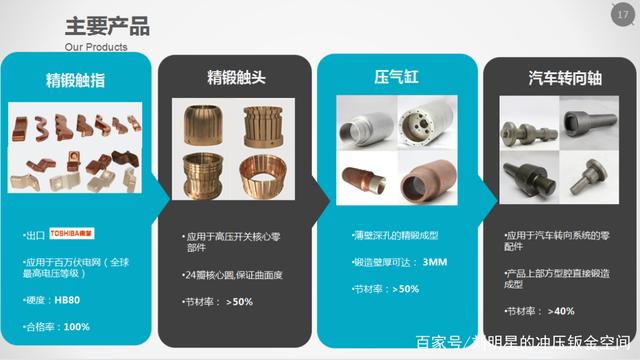 公司主要产品为汽车传动及转向系统所需的各类精密冷锻件,以及电缆接头和五金件。年产各类冷锻件2万多吨。拥有16~1000吨各类锻压机床共40余台,模具加工(含电加工)、零件机械加工设备50余台套,以及满足产品生产过程监控的各类检测仪器及设备。公司已於2000年通过ISO9001;2008年通过ISO/TS16949:2002国际质量体系认证。