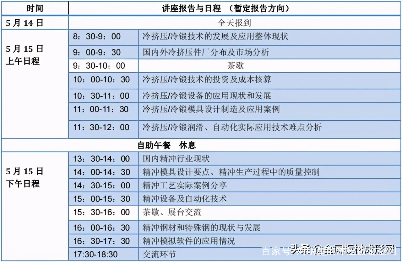 MFC 第二届金属冷挤压与精冲技术论坛将于 2021 年 5 月 13 日-14 日在上海举办,规模大约 150 人。
