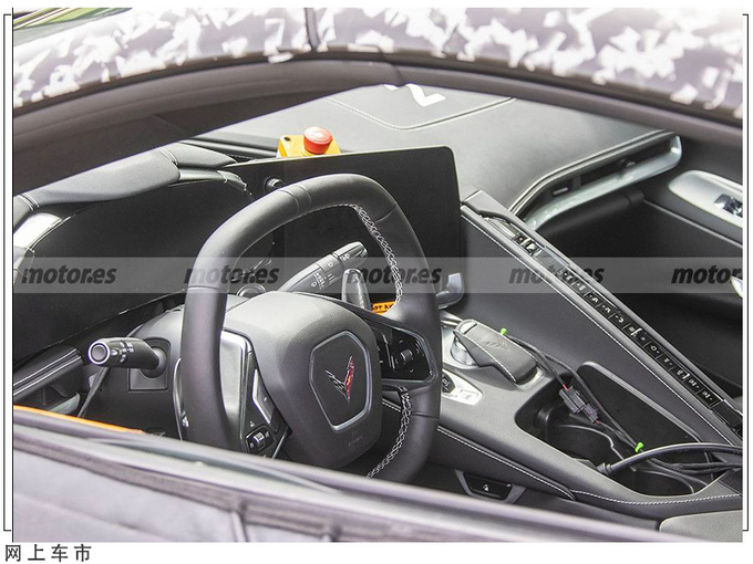 内饰上,根据新车的谍照来看,全新科尔维特E-Ray延续了其家族式设计,采用悬浮式液晶仪表和悬浮式液晶中控大屏的组合。新车还搭载有双辐式平底运动方向盘,采用了环抱式座舱设计,中控台偏向于驾驶员一侧,所有按键都排列在中央侧边栏上,提升了操作便利性的同时还带有极强的科技感。值得一提的是,作为混动版车型,新车还将会对内饰上的用料和缝线、配色等进行升级,以彰显其与众不同的身份。