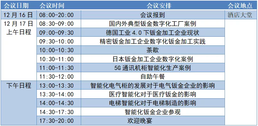 本次会议将邀请钣金加工数字化转型典型企业代表和行业专家就企业就企业数字化应用、软件、高效自动化生产等做专题报告。会议期间将进行交流、洽谈和企业参观等项活动。