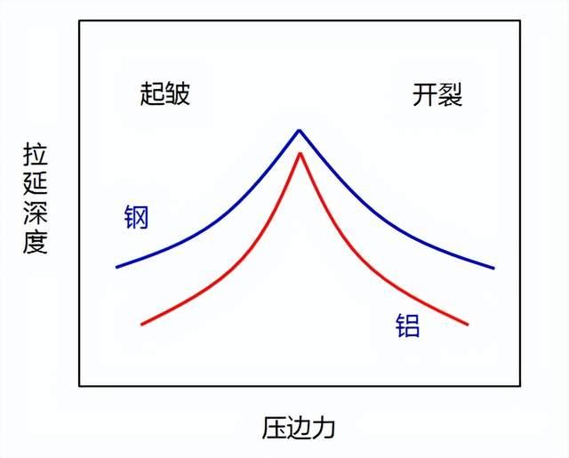 与钢板相比,铝合金板的起皱与开裂之间的窗口较窄,起皱倾向严重。