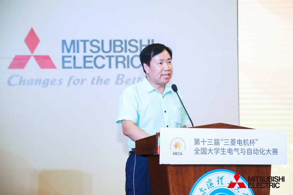 南京师范大学党委书记、国务院学位委员会学科评议组成员、教育部高等学校电气类专业教学指导委员会主任、江苏省委委员胡敏强教授在致辞中提到,“三菱电机杯”大赛深入贯彻落实习近平总书记关于高等教育的重要论述和全国教育大会精神,大赛组委会将继续秉承公开、公平、公正的竞赛原则,通过校企合作的多种形式不断推动教学改革,探索人才培养新模式,助推我国全面振兴新工科建设。
