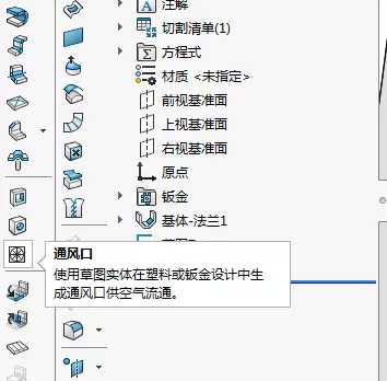 点击钣金绘图模块通风口命令